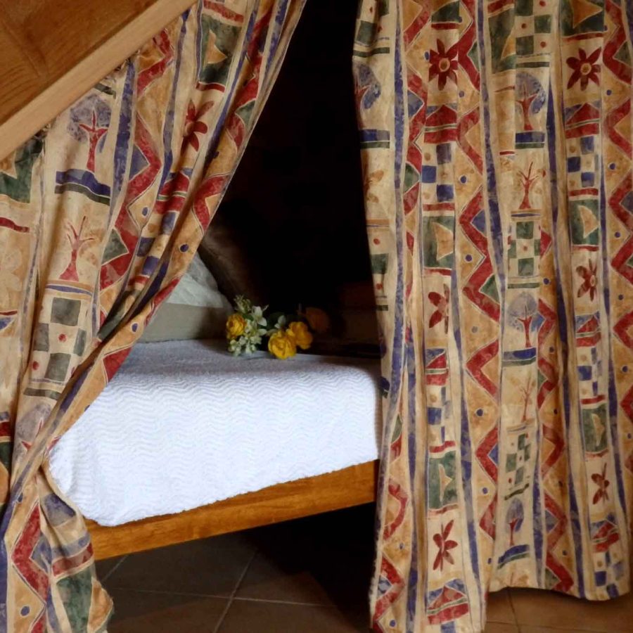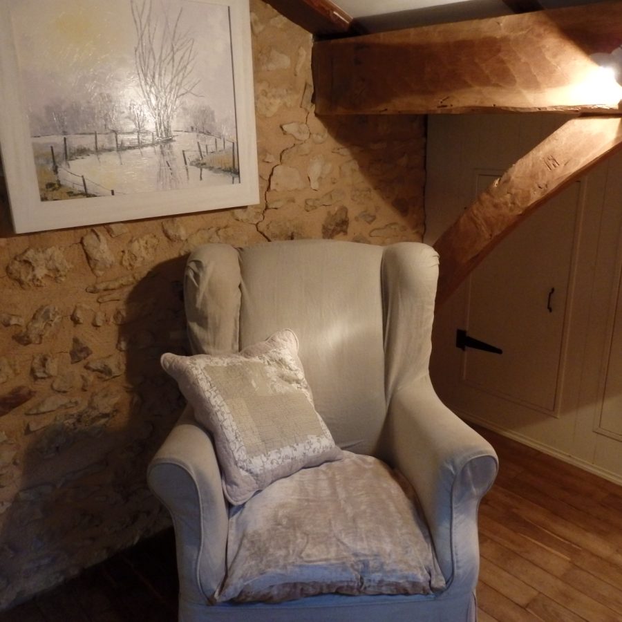 Le rez-de-chaussée est composé d’une grande pièce avec un salon, une table pour les repas, une pièce cuisine, deux lits de 1 personne en alcôve. La salle d’eau avec WC est également au rez-de-chaussée. Confortablement meublée, cette pièce ouvre sur la terrasse et la campagne environnante.